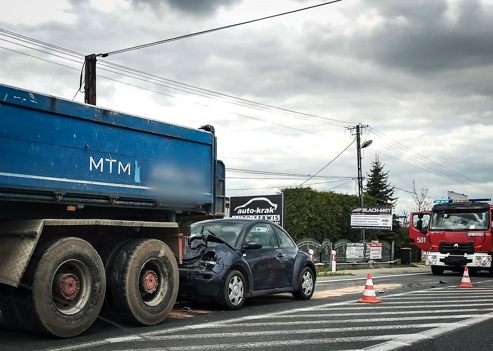 Na miejscu są chwilowe utrudnienia na jednym pasie. Pracuje tam policja i strażacy. Kierowca garbusa wbił się w tył samochodu ciężarowego.