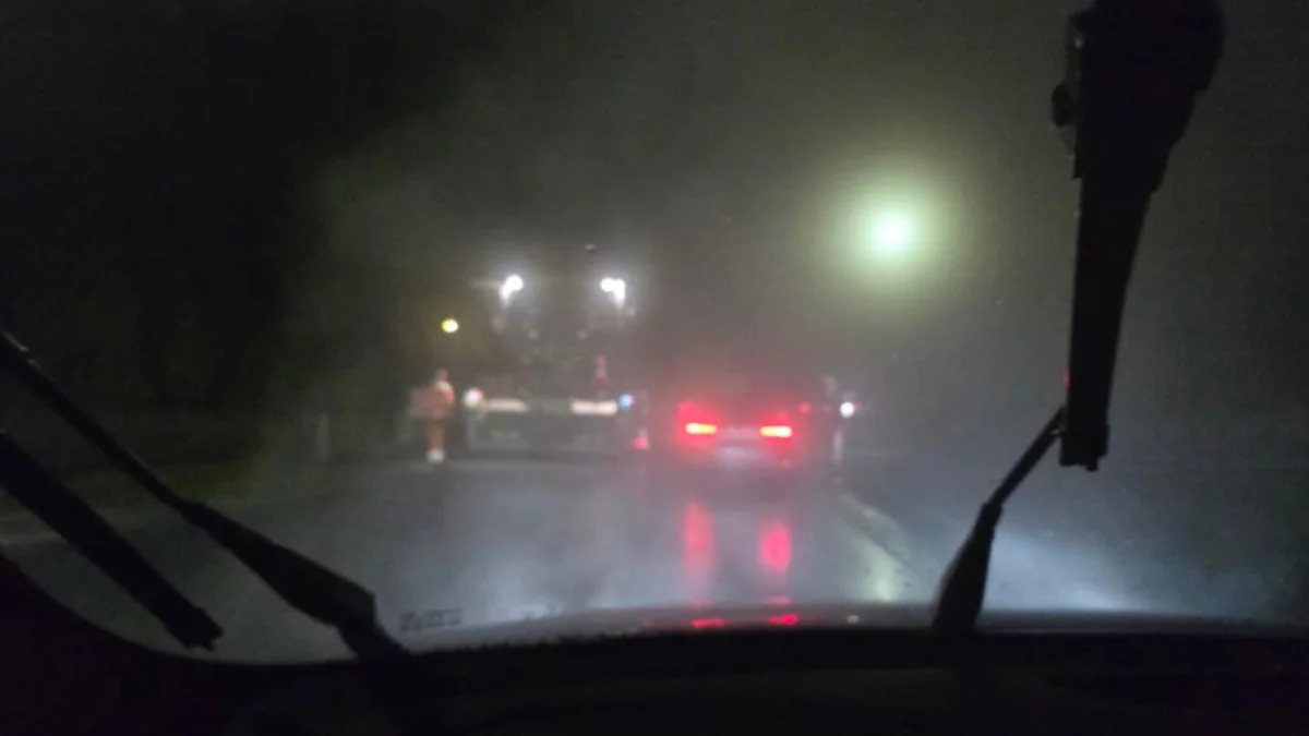 Największe problemy pojawiają się tam, gdzie układana jest świeża warstwa asfaltu. W niskiej temperaturze i wilgoci asfalt intensywnie paruje, co tworzy nad jezdnią gęstą „mgłę”. Widoczność spada niemal do zera, a kierowcy muszą poruszać się powoli i zachować szczególną ostrożność.