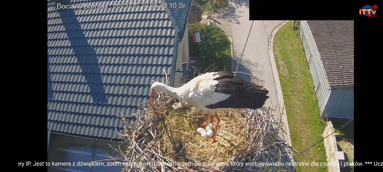 Dzięki zainstalowanej kamerze przy gnieździe internauci mają możliwość obserwowania takich scen z życia bocianiej pary. To niezwykłe urządzenie umożliwia im śledzenie troskliwej opieki, jaką para ptaków poświęca swoim jajom. Obserwując na żywo, można zobaczyć, jak samica większą część doby spędza na jajach, utrzymując je w odpowiedniej temperaturze i wilgotności. W przerwach od wysiadywania samica starannie obkłada jaja mchem i liśćmi, zapewniając im dodatkową izolację i ochronę.