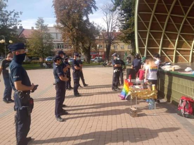 9 policjantów wbiło do nas i stwierdziło że zgromadzenia nie ma, bo urząd miasta nie potrafi czytać maili i nie dostał informacji o zgromadzeniu (sprawdzajcie pocztę ziomki) a burmistrz nie wyraża zgody - relacjonują członkinie grupy. - Tak byli zajęci nami, że nie starczyło im sił na reagowanie na wyzwiska kolesi obok. Będziemy wyjaśniać tę imbę z prawnikami. Dzięki dobre mordeczki, które podeszły na stoisko. Zwinęłyśmy się ale jeszcze tu wrócimy z homopropagandą.