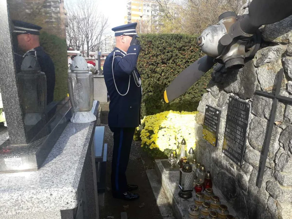 Komendant Grazda zapalił również symboliczny znicz przed tablicą upamiętniającą funkcjonariuszy Policji Państwowej związanych z powiatem mieleckim, a zamordowanych przez Sowietów w latach 1939-1940 w Kalininie i innych miejscach na Wschodzie.