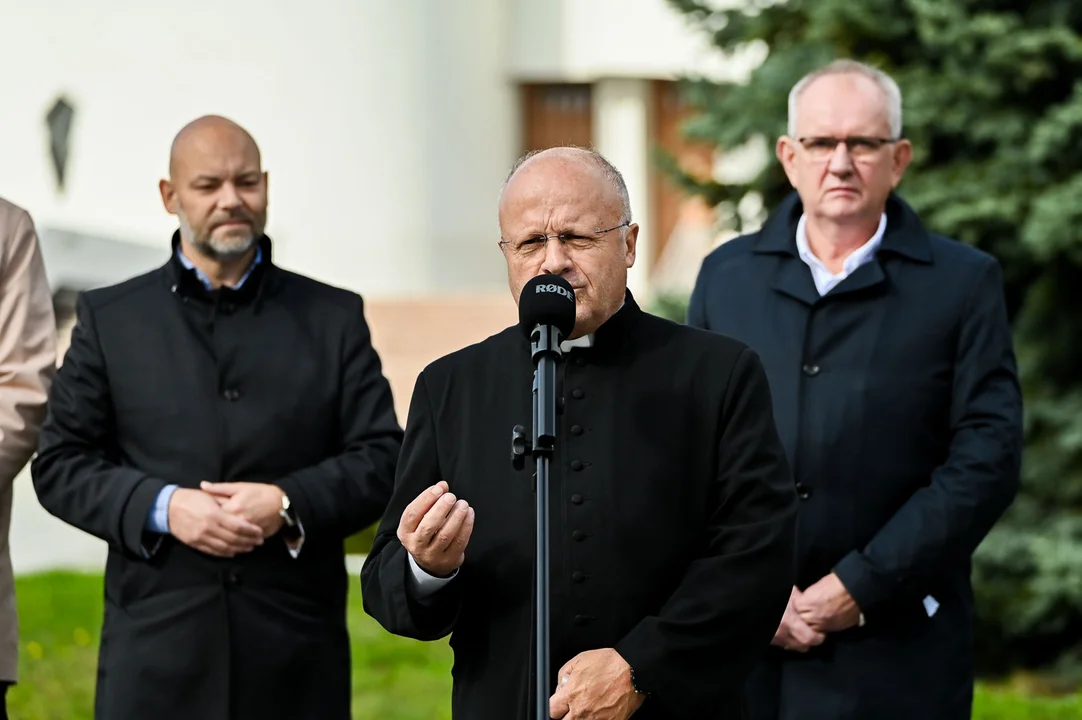W konferencji wzięli udział Prezydent Miasta Mielca Radosław Swół, Pierwszy Zastępca Prezydenta Miasta Mielca Krzysztof Szostak, Poseł na Sejm RP Fryderyk Kapinos oraz proboszcz parafii pw. Ducha Świętego ks. Waldemar Ciosek.