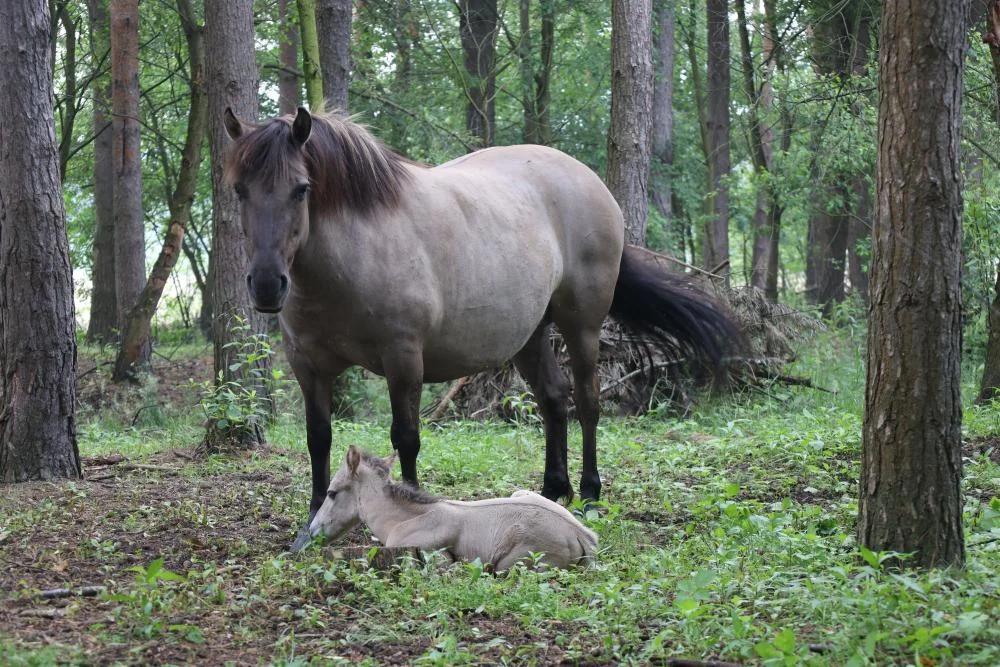 Klacze, Tuja i Heca, i ich dzieci czują się dobrze. Już kilkadziesiąt minut po porodzie maluchy podążały za matkami. Tabun w nadleśnictwie Tuszyma liczy obecnie sześć koni: trzy dorosłe klacze, jednego rocznego ogierka oraz dwoje źrebiąt.