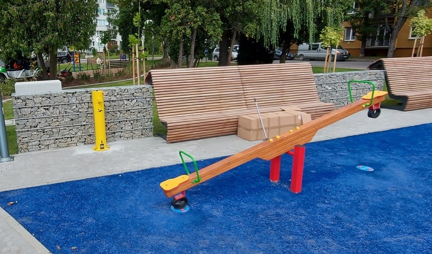Dozownik posiada 8 litrowy zbiornik, jest odporny na warunki atmosferyczne, a jego żółty kolor ułatwia odnalezienie punktu dezynfekcji.