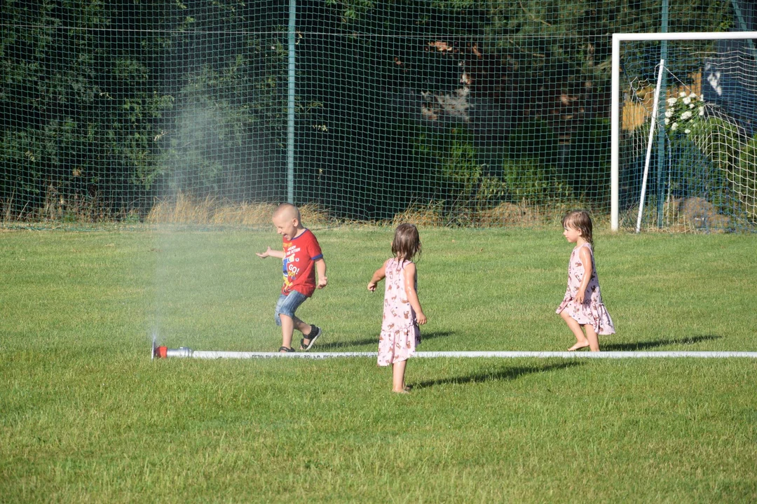 Niedzielne popołudnie jak się okazało było dość gorące, o schłodzenie przybyłej ludności, nie tylko zimnymi napojami, zadbali strażacy OSP Złotniki, co było zabawnym zaskoczeniem zarówno dla dzieci jak i dorosłych.