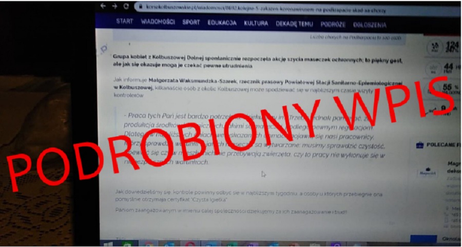 Wracamy do sprawy przerobionej treści posta zamieszczonego na portalu Korso Kolbuszowskie [pisaliśmy o tym tutaj: Kiepski żart z szyjących maseczki. Ktoś się podszywa pod Korso]. Jak się okazuje, w zmanipulowanej treści ktoś zawarł wypowiedź przedstawiciela Wojewody Podkarpackiego, który miał się wypowiedzieć na temat planowanych wizyt kontrolerów.