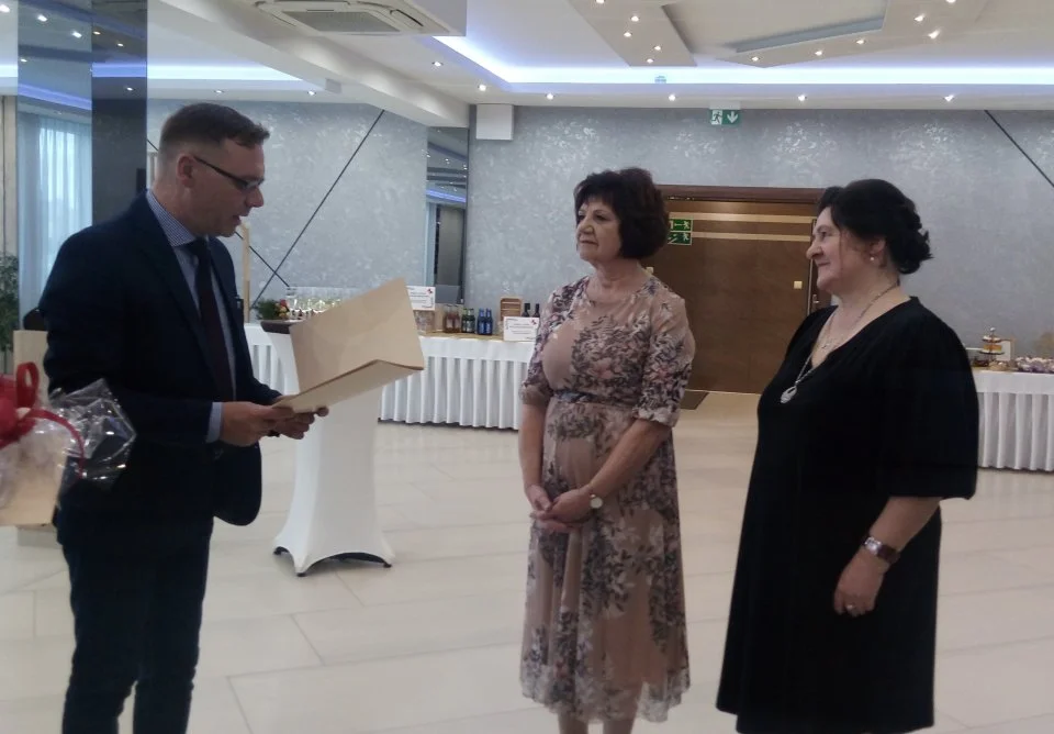 Wójt Gminy, Robert Pluta oraz Przewodniczący Rady Gminy, Janusz Bik, dziękując za wieloletnią pracę na rzecz gminy, złożyli życzenia realizacji osobistych planów i zamierzeń, wspieranych dobrym zdrowiem i zasłużoną satysfakcją z zawodowych dokonań oraz wręczyli okolicznościowe podziękowania.
