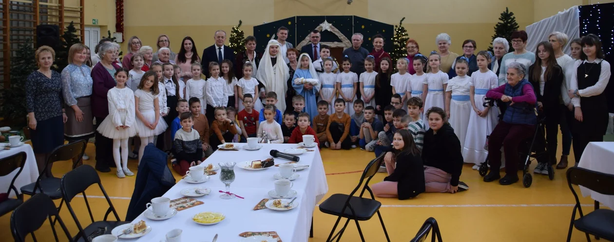 Goście obejrzeli przedstawienie jasełkowe w wykonaniu dzieci z oddziału zerowego oraz występ pt."Jest taki dzień" w wykonaniu klasy I i II. Spotkanie zakończyło się wspólnym śpiewaniem kolęd oraz pamiątkowym zdjęciem.