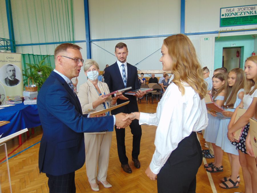Pani kurator gratulowała uczniom wyróżnień, wskazywała na dobra współpracę szkoły z samorządem oraz życzyła, aby miesiące zdalnej nauki już nie musiały się powtarzać. Przekazała dla szkoły zestaw RoboMaker do nauki programowania. Wyróżnienia z rąk kurator odebrali uczniowie klas ósmych. Kurator wraz z wójtem Gminy Padew Narodowa Robertem Plutą wręczyła także nagrody w konkursach poświęconych patronowi naszej szkoły Ignacemu Łukasiewiczowi oraz stypendia dla najlepszych uczniów.