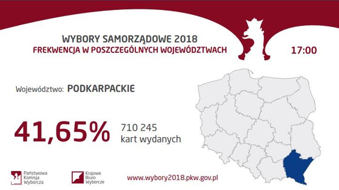 Frekwencja dla województwa Podkarpackiego z godziny 17.00 wyniosła 41.65%