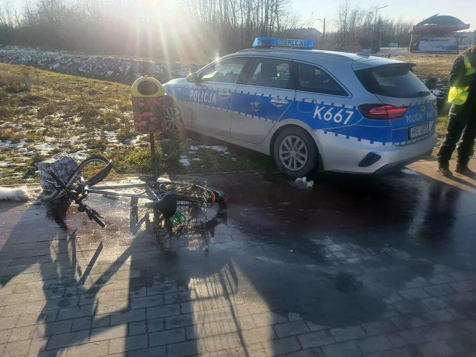 Ranny cyklista został przewieziony do szpitala. Policjanci apelują o ostrożność nie tylko kierowców, ale i rowerzystów.