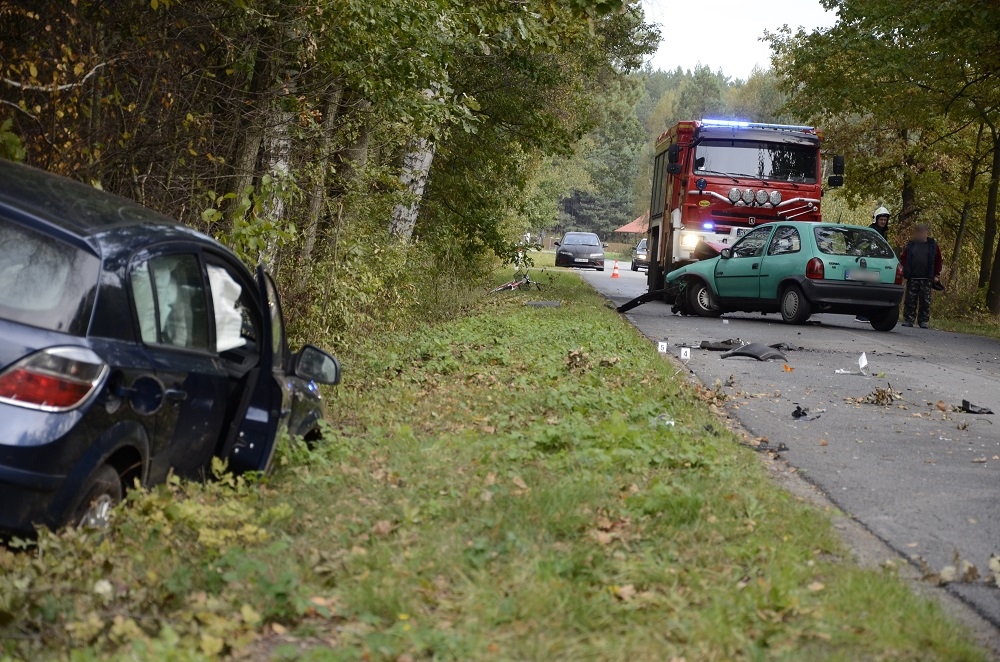 Policyjny opel zderzył się z oplem corsą. Zdarzenie miało miejsce na drodze powiatowej relacji Mechowiec - Kopcie, w miejscowości Płazówka.