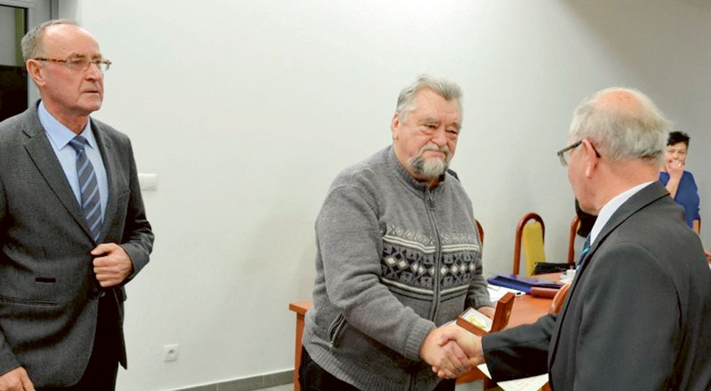 - Wczoraj obchodziliśmy 35. rocznicę wprowadzenia stanu wojennego w Polsce. To dobra okazja do wręczenia złotego medalu śląsko-dąbrowskiej Solidarności. Panie Józefie, zapewne nie wszyscy w naszej gminie wiedzieli o pańskiej działalności związkowej, zwłaszcza tej na Śląsku. O ten medal zawnioskowali pańscy koledzy. Proszę przyjąć nasze gratulacje - przemawiał do wyróżnionego przewodniczący rady. Dalej przytoczył słowa z listu kolegów radnego, którzy raz jeszcze przypomnieli o jego dawnych zasługach. Wynikało z niego, iż Józef Siembab jako pierwszy z Przedsiębiorstwa Energomontażowego PW Chorzów dał wyraz swojego niezadowolenia z systemu komunistycznego, stając na czele komitetu strajkowego. „Dalej śledząc twój życiorys, dałeś świadectwo i jesteśmy pewni, że jesteś tego medalu na pewno godzien” - napisali w zakończeniu listu gratulacyjnego.