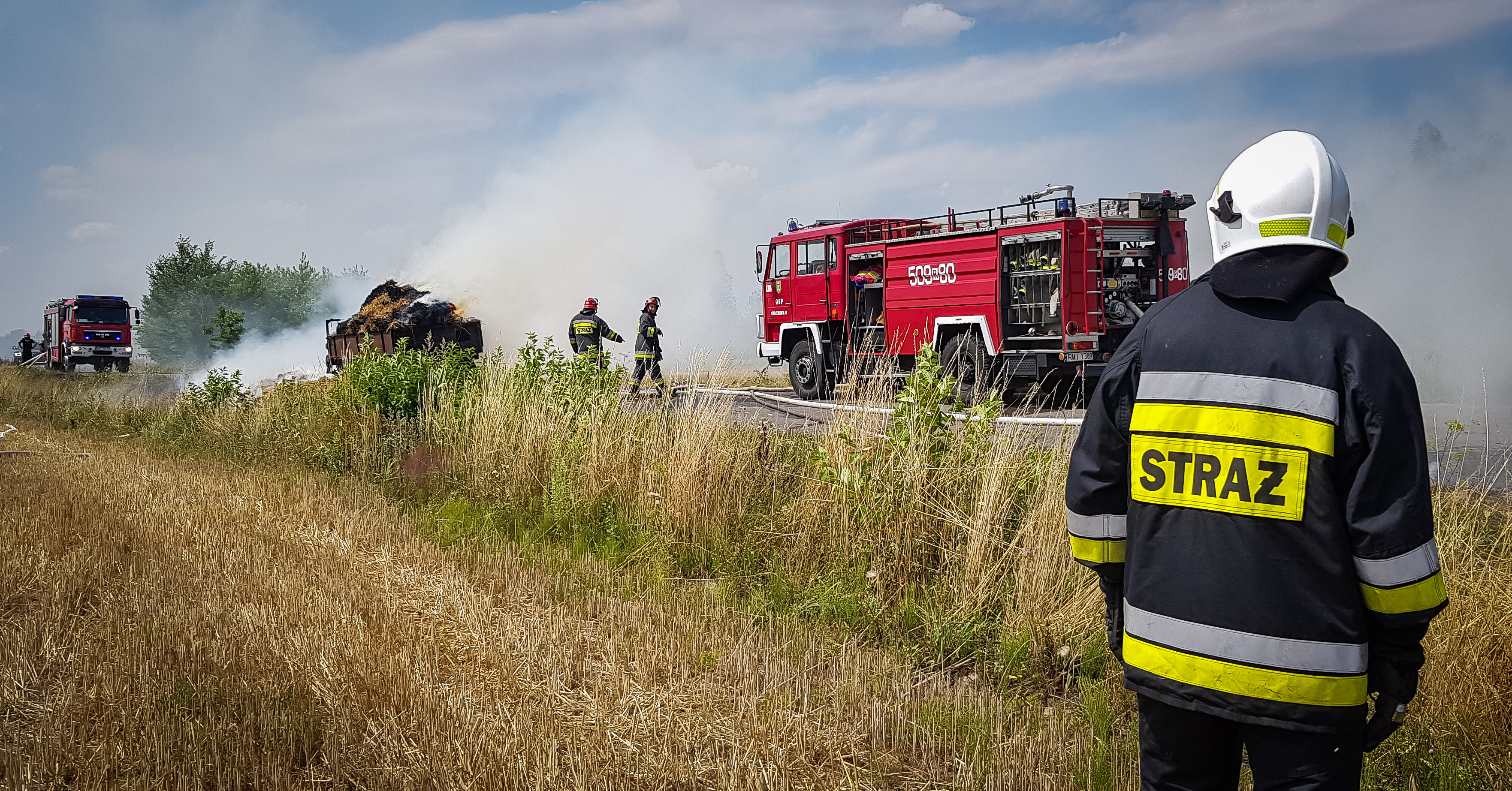 Droga Grochowe ll - Sarnów całkowicie zablokowana. Na miejscu pracują strażacy.