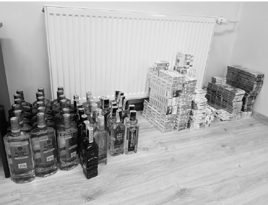 Najpierw w jednej z przemyskich noclegowni przy ul. Kopernika funkcjonariusze zabezpieczyli 619 paczek papierosów różnych marek oraz 29,4 l różnego rodzaju alkoholu bez polskich znaków akcyzy. Właścicielkę nielegalnego towaru 51-letnią obywatelkę Ukrainy zatrzymano.