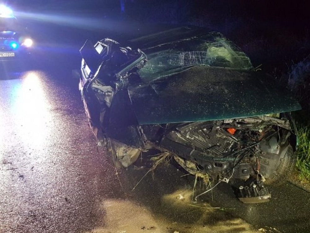 W trakcie interwencji, siedzący za kierownicą seata mężczyzna, podał policjantom nieprawdziwe dane personalne, odpalił silnik i zaczął uciekać. Funkcjonariusze natychmiast ruszyli za uciekinierem używając sygnałów świetlnych i dźwiękowych radiowozu. Po przejechaniu kilkuset metrów kierujący seatem na łuku drogi stracił panowanie nad samochodem, zjechał do rowu, uderzył w betonowy przepust, a następnie dachował.