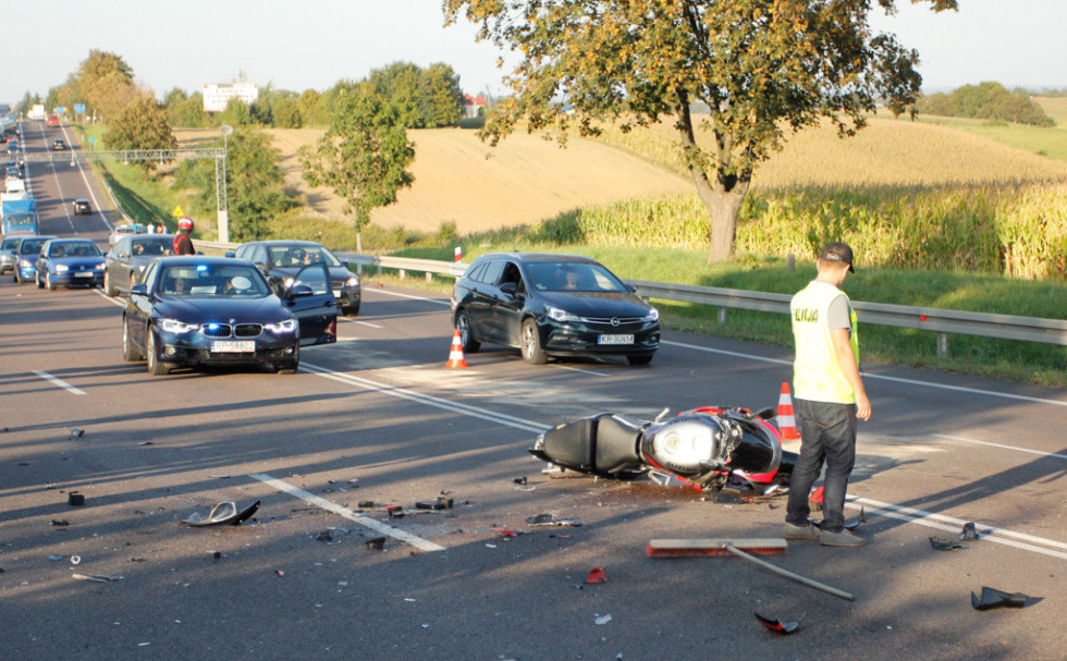 Do wypadku doszło w godzinach szczytu. Motocyklista chciał wyminąć stojące samochody i wyjechał na przeciwny pas ruchu...