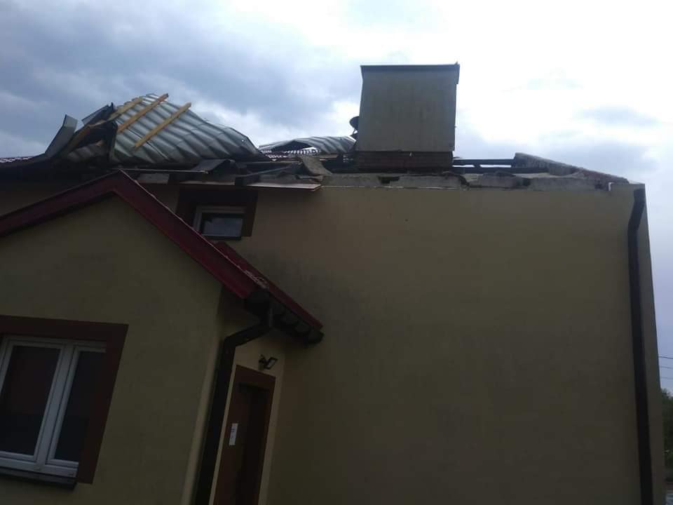 Porywisty wiatr uszkodził kilkanaście dachów na budynkach mieszkalnych, lokalnej remizie i szkolnej sali gimnastycznej.