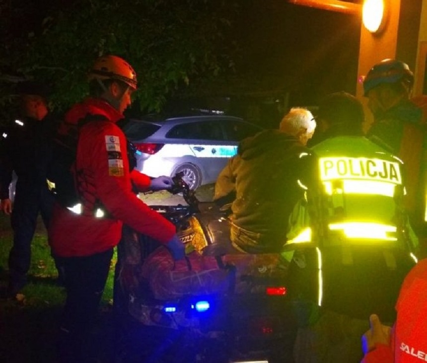 Zaalarmowani funkcjonariusze natychmiast rozpoczęli poszukiwania mężczyzny. W działaniach brało udział ponad 100 osób. Zaangażowanych było 40 policjantów, 40 strażaków, ratownicy GOPR-u, lokalni mieszkańcy i rodzina zaginionego. Działania były prowadzone w trudnych warunkach atmosferycznych. Zważywszy na to, że ubiór 82-latka nie był odpowiedni i groziło mu wychłodzenie, liczyła się każda minuta.