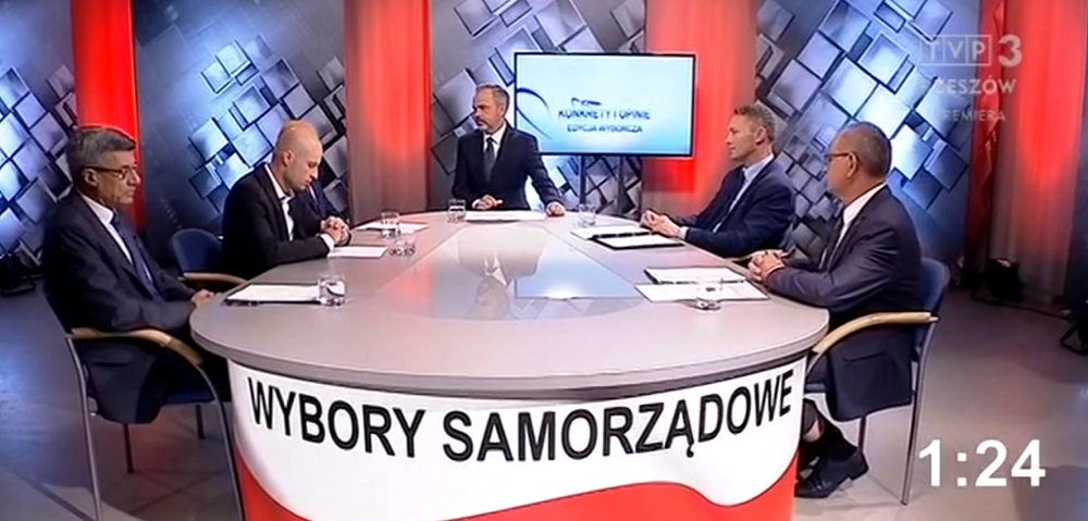 Pierwsza telewizyjna debata z udziałem kandydatów na urząd prezydenta Mielca zorganizowała TVP Rzeszów w ostatni poniedziałek 8 października. Program był nagrywany, a jego emisja miała miejsce wieczorem o godz. 19:00. Z naszej wiedzy wynika, że kandydaci znali wcześniej tematykę pytań jaka będzie poruszana. Na odpowiedz na zadane pytania mieli ograniczony czas. Na koniec mogli zadać sobie nawzajem pytania a także mogli w kilku zdaniach zachęcić wyborców do udziału w wyborach. Debata trwała ponad godzinę.