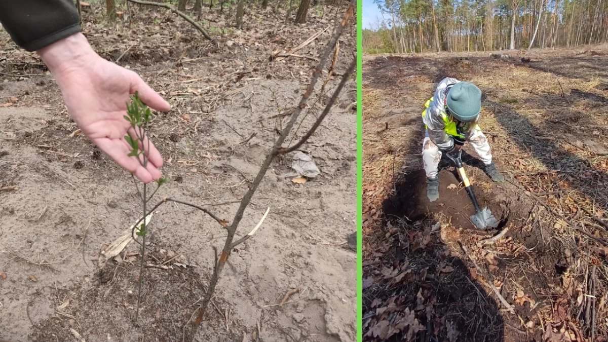 Sadzone w lesie drzewka miały po dwa lata. Dzięki wspólnej akcji teren po przeprowadzonych pracach leśnych zyskał nowe pokolenie drzew i krzewów, które w kolejnych latach będą wzmacniać lokalny ekosystem. Była to również okazja do praktycznej edukacji przyrodniczej i pokazania, że las wymaga nie tylko ochrony, ale też regularnej, odpowiedzialnej opieki.