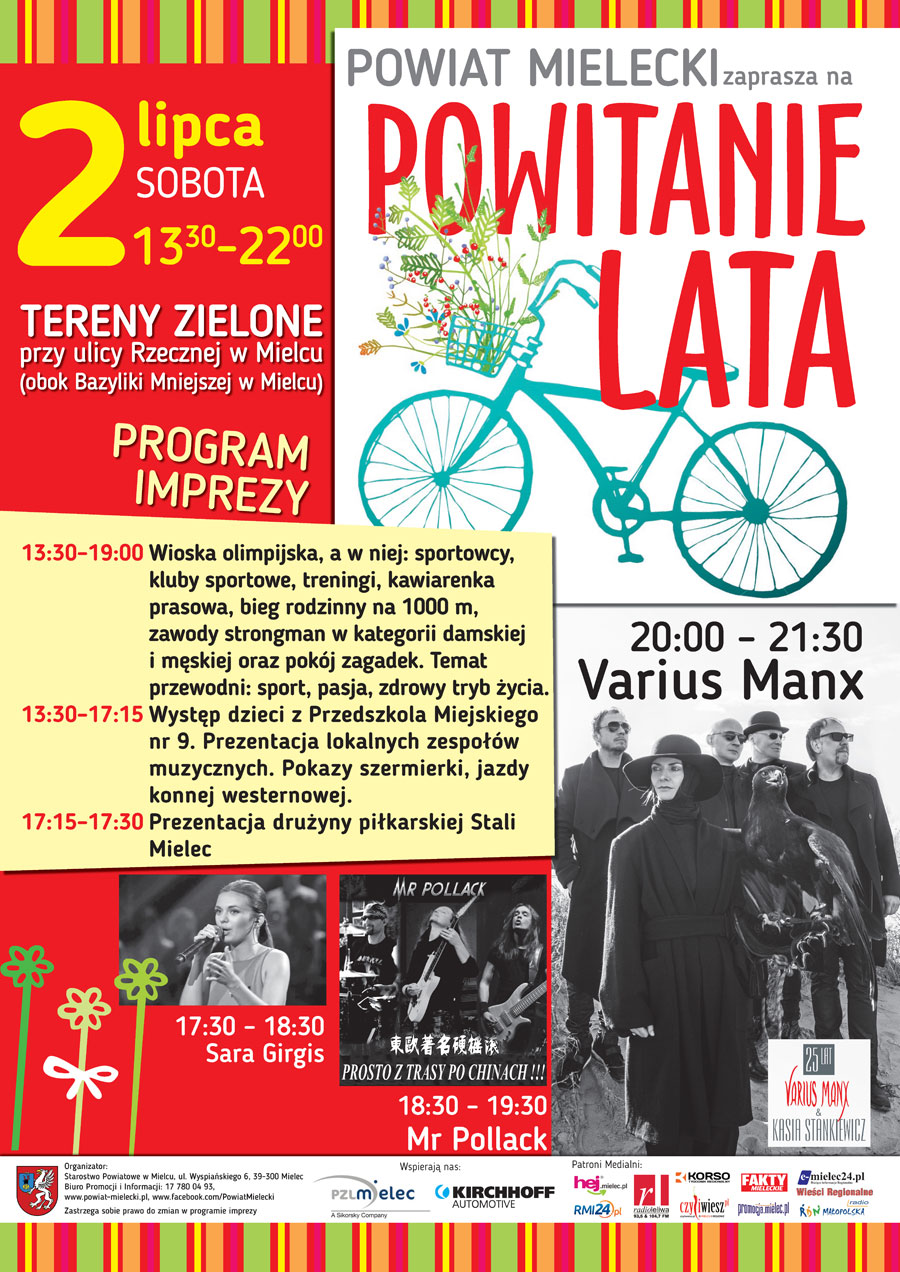 Podczas całego dnia występować będą lokalni artyści (m.in. Sara Girgis, Mr Pollack) zaś na finał wieczoru zaprosiliśmy obchodzący 25-lecie istnienia zespół Varius Manx, z legendarną wokalistką Kasią Stankiewicz.