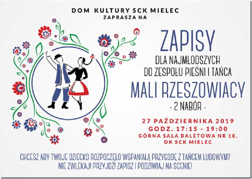 27 października odbędą się zapisy do Zespołu Pieśni i Tańca Mali Rzeszowiacy.
