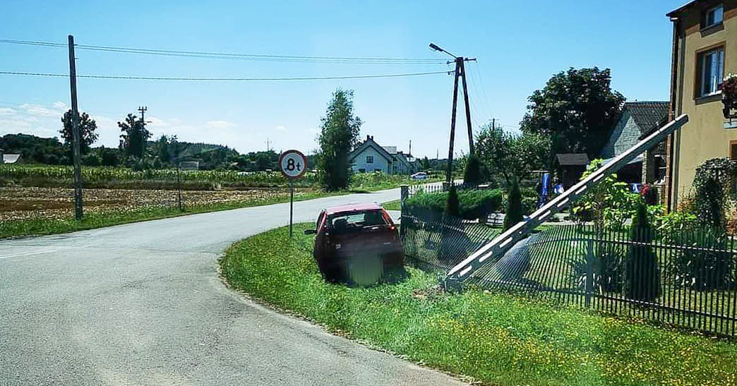 W wyniku zdarzenia kierujący samochodem osobowym wypadł z drogi i uderzył w betonowy słup energetyczny.