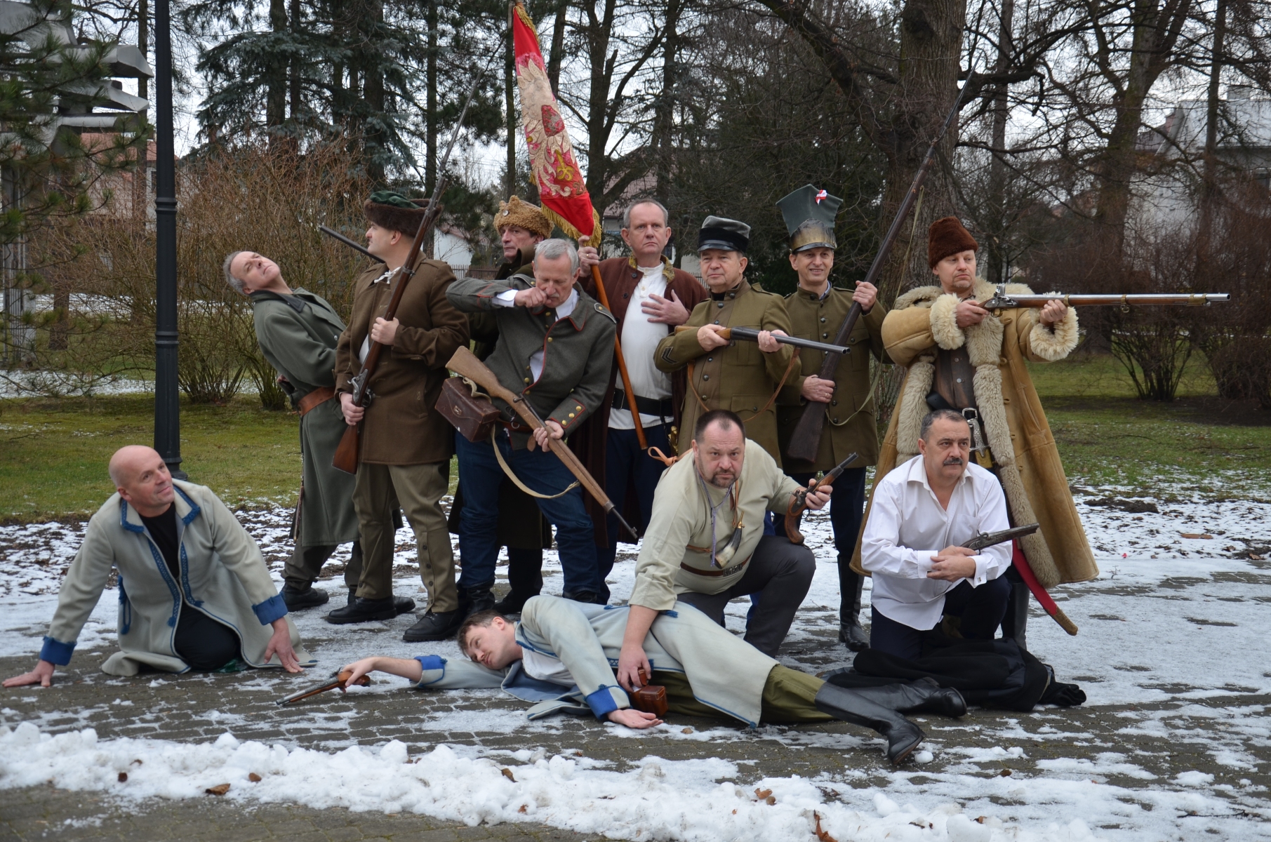 W grupie inscenizacyjnej wzięli udział: marszałek województwa Władysław Ortyl, starosta powiatu Zbigniew Tymuła, wiceprezydent Jan Myśliwiec, wiceprzewodniczący Rady Andrzej Zemmel, szef komisji kultury Marek Zalotyński, Fryderyk Kapinos, Romuald Rzeszutek, Jerzy Flis, Bogdan Kołacz, Konrad Jędrzejowski, Roman Matłosz, oraz Jerzy Skrzypczak.