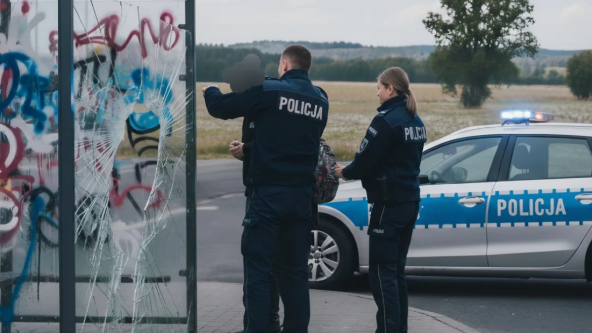Zgłoszenie dotyczyło rozbitej szyby w wiacie przystankowej. Z ustaleń wynika, że szyba została uszkodzona umyślnie — w wyniku uderzenia ręką.