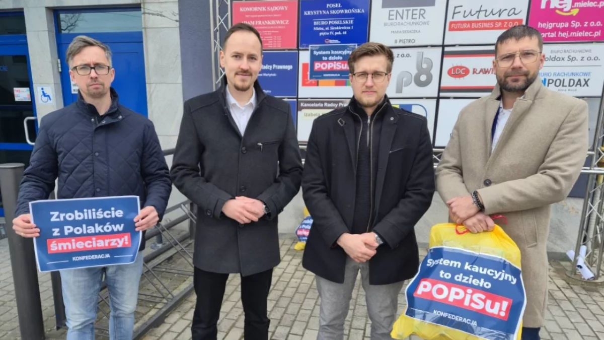 W Mielcu odbyła się dziś konferencja prasowa lokalnych działaczy Konfederacja poświęcona tematowi systemu kaucyjnego. Podobne wydarzenia miały miejsce tego samego dnia w różnych częściach Polski, co – jak podkreślali organizatorzy – ma świadczyć o ogólnokrajowym sprzeciwie wobec obecnych rozwiązań.