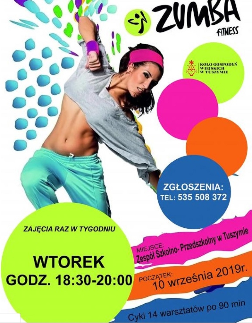 W przedmiotowej ofercie zawarto 14 sesji po 90 minut zajęć zumby z profesjonalnym instruktorem. Zajęcia odbywać się będą we wtorki, w godzinach 18:30 do 20:00 na sali gimnastycznej Zespołu Szkolno- Przedszkolnego w Tuszymie.