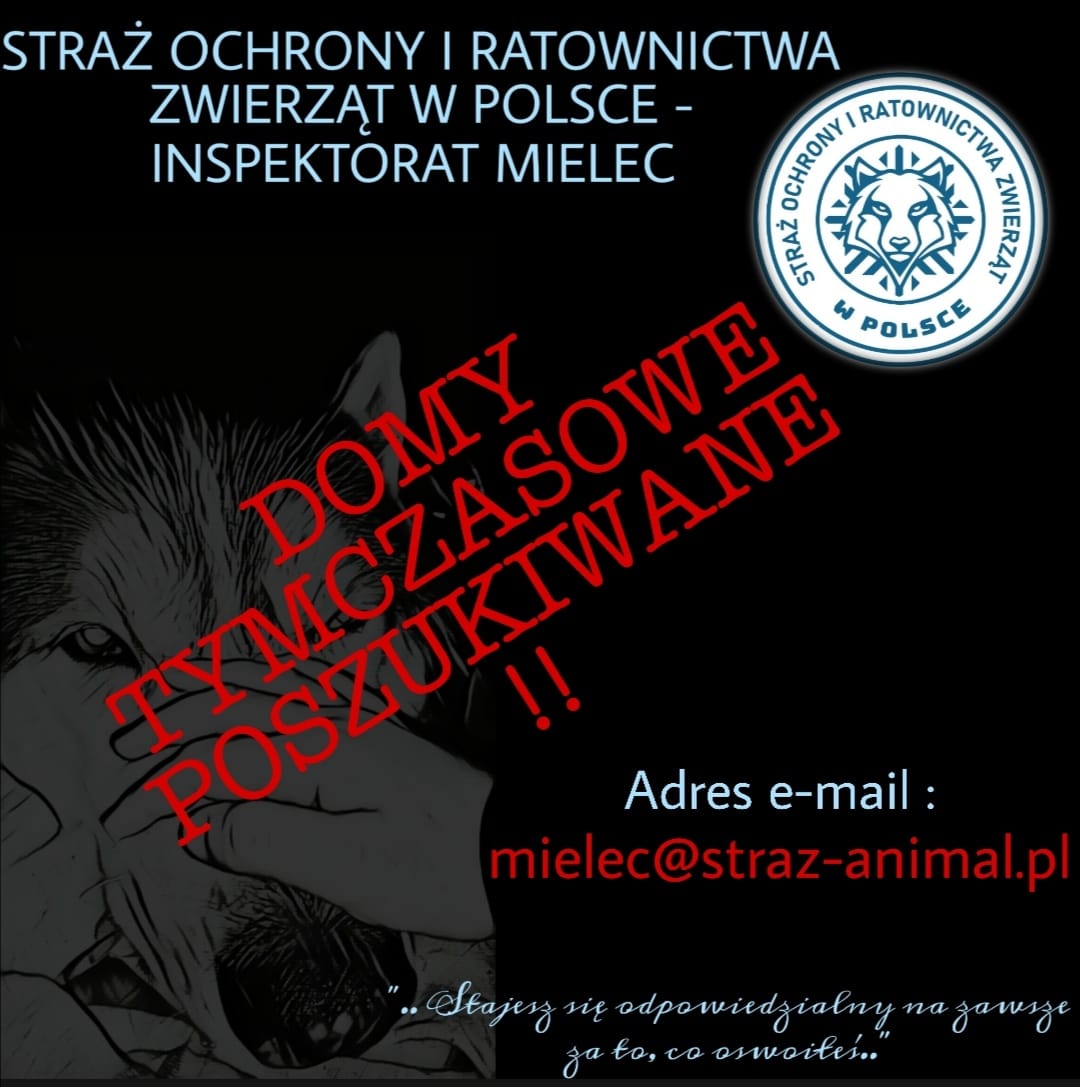 Straż Ochrony i Ratownictwa Zwierząt bardzo pilnie poszukujemy domów tymczasowych, z którymi nawiąże współpracę.