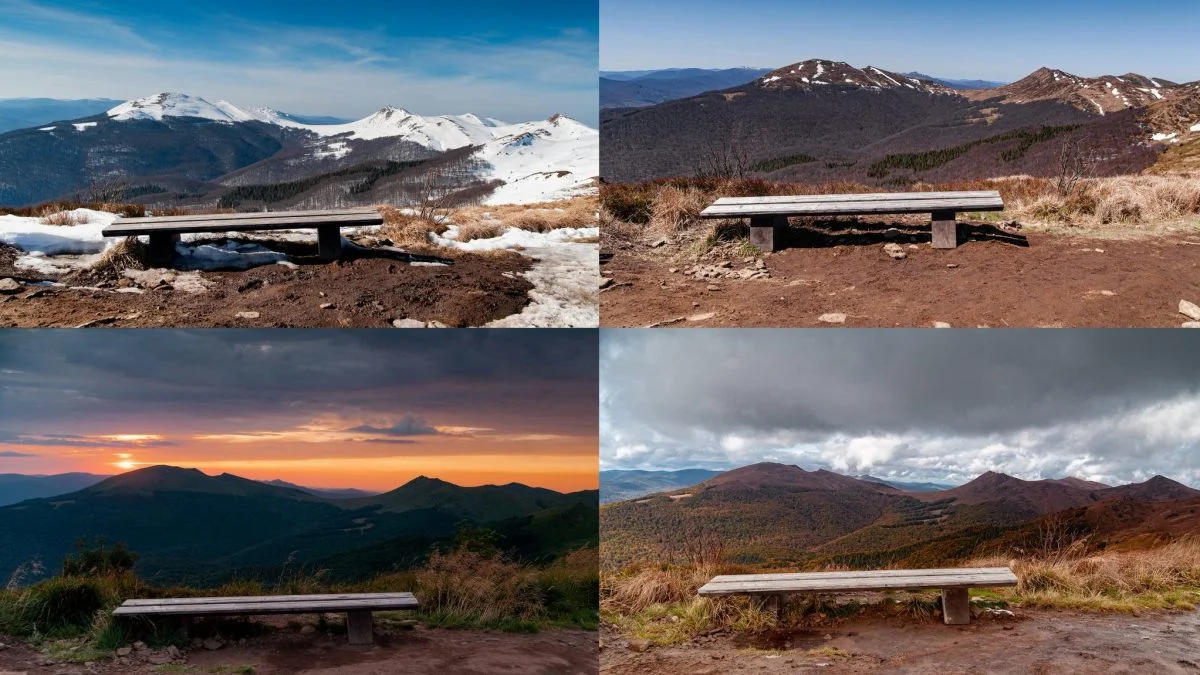 Pomysł uwiecznienia ławeczki w czterech porach roku pojawił się nagle, spadł jak z nieba. Mimo mojej ponad trzydziestoletniej pasji wędrowania po górach i nieuleczalnego uzależnienia od nich, czasami pojawiała się rutyna. Dlatego starałem się co jakiś czas urozmaicić sobie wędrowanie wprowadzając rożne elementy. Nie będę się rozpisywał i opisywał szczegółów, ponieważ nie zawsze są one całkowicie bezpieczne, ale koncept „ławeczki” mogę z pełnym przekonaniem opisać i polecić każdemu szukającemu podobnej przygody.